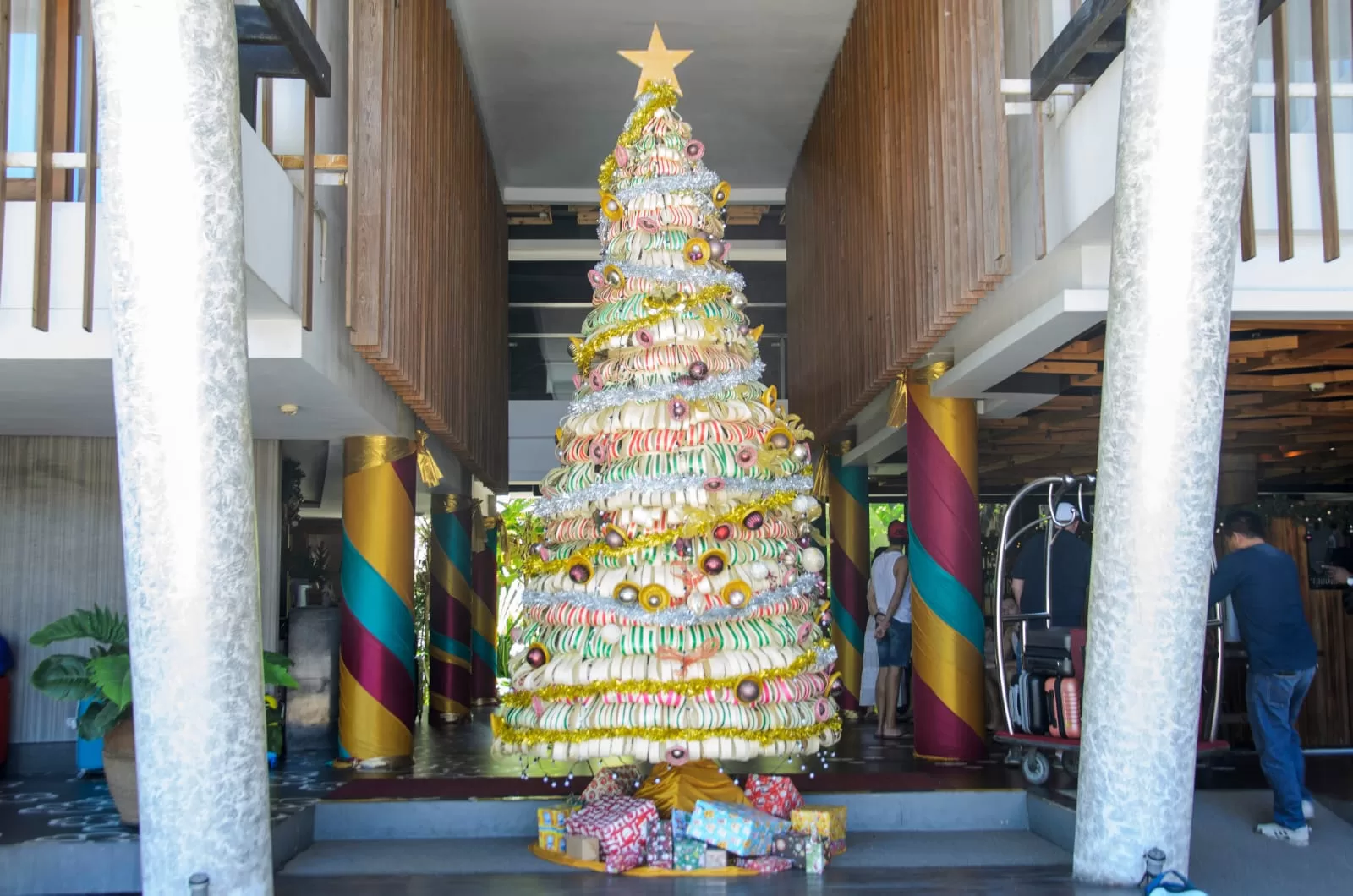Yang tak akan luput dari perhatian juga, adalah kehadiran pohon natal setinggi 5 meter yang berdiri megah di tengah lobby hotel tersebut.